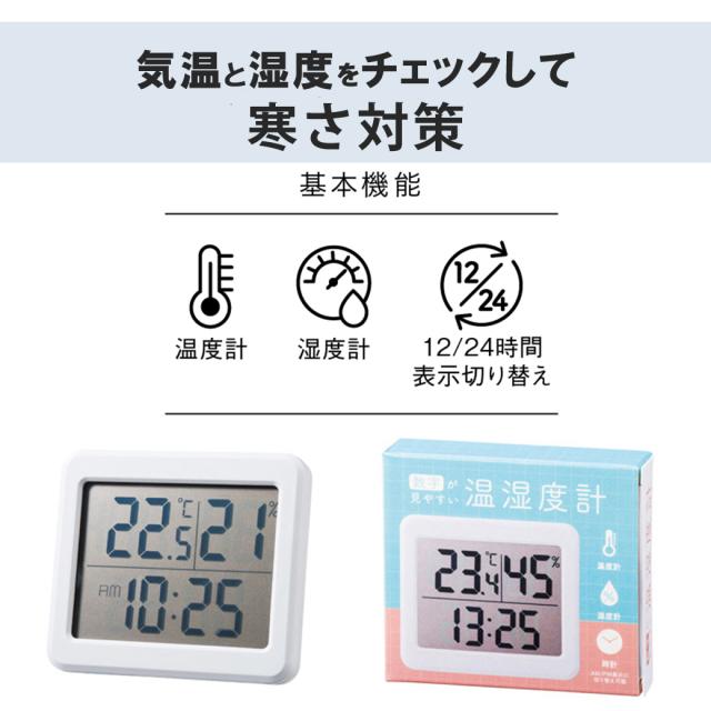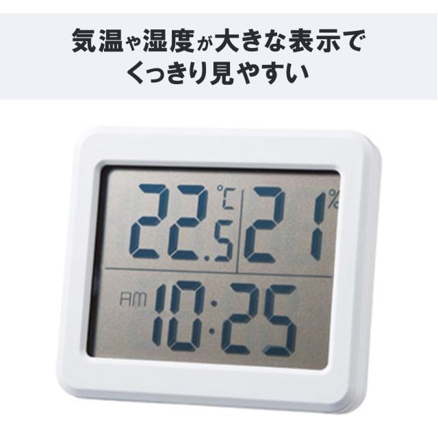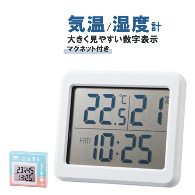 温湿度計 デジタル おしゃれ 寒さ対策 気温 温度計 湿度計 時計 温湿度計付き 温度 測定器 卓上 室外 室内 壁掛け スタンド マグネット フック穴 大画面 母の日