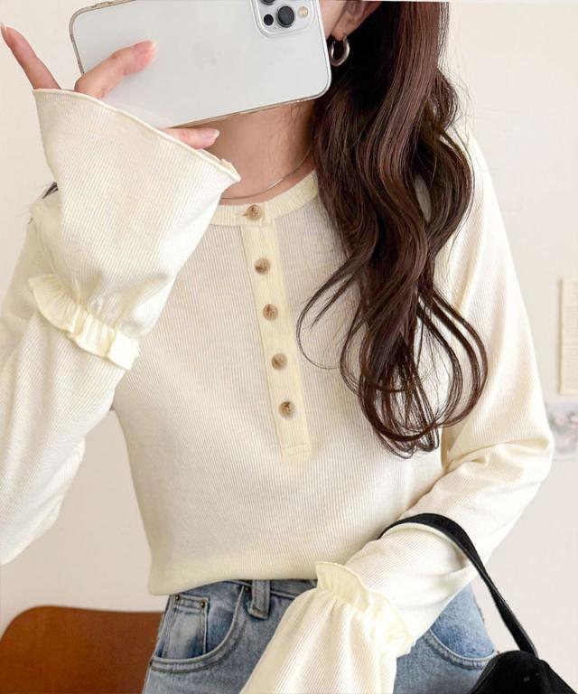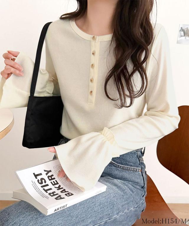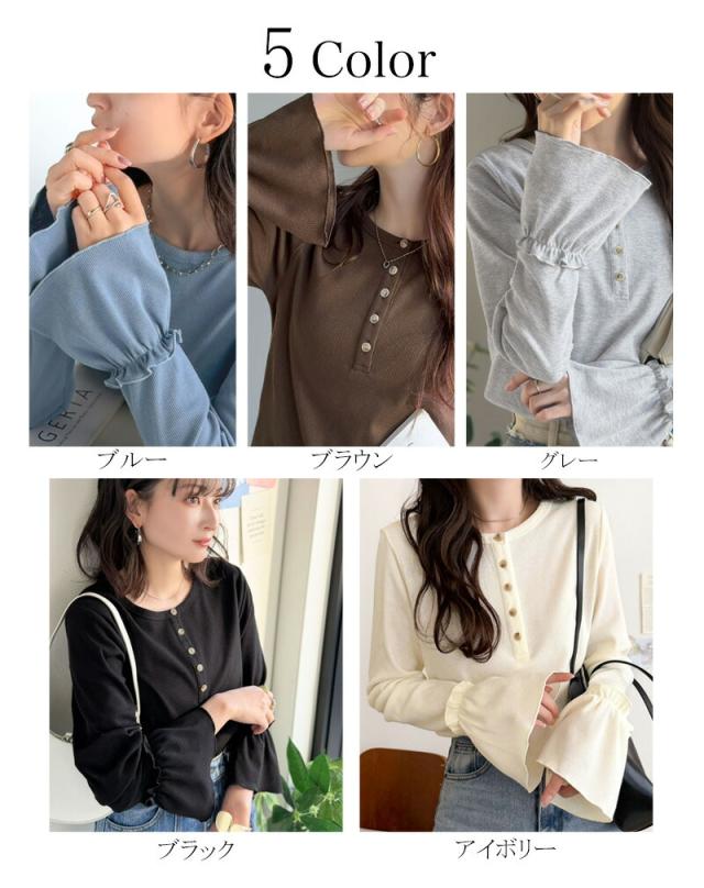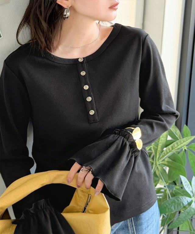 クラシカルエルフ夏新作 トップス レディース 可愛い 1枚で決まる Tシャツ 前後 2way ヘンリーネック キャンディスリーブ プルオーバー 長袖 おしゃれ 大きいサイズ 黒 白 2026ss ce1240119