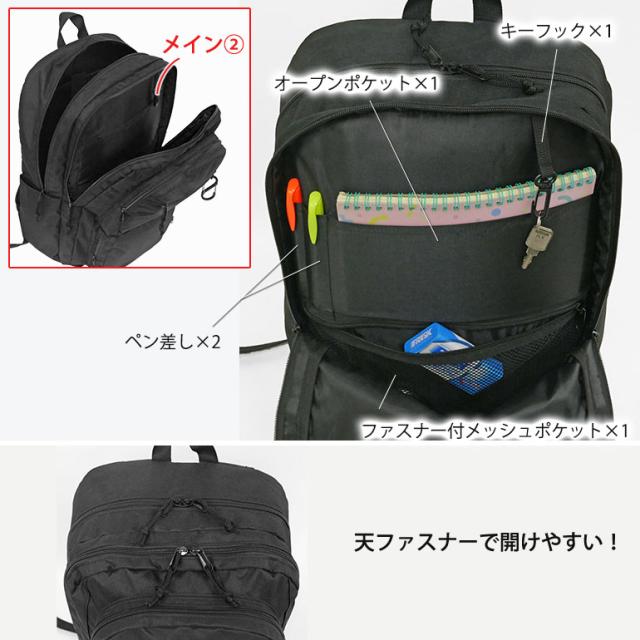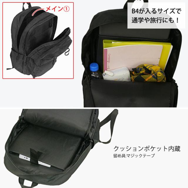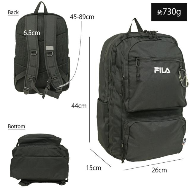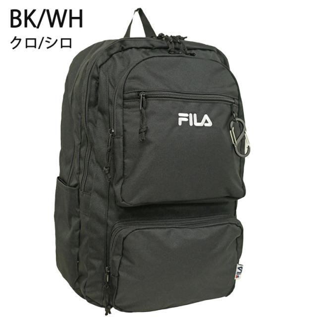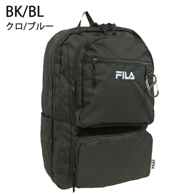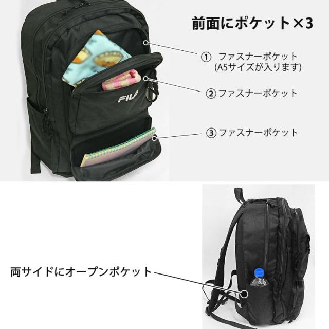 FILA リュック B4 デイパック バックパック 学生 通学 スクール 2層 撥水 PC タブレット メンズ レディース 中学生 高校生 大学生 学校 旅行 合宿 修学旅行 ユニセックス フィラ 大容量 多収納 出ポケ 多ポケット 9ポケット ポリエステル レディース ブラック FLB34
