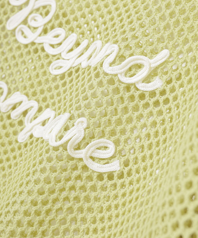 程よい透け感のメッシュ編みにコード刺繍ロゴがお洒落なデザイン。