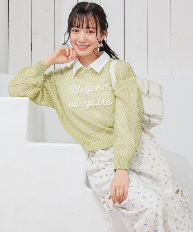 【商品名】コード刺繍メッシュニット
