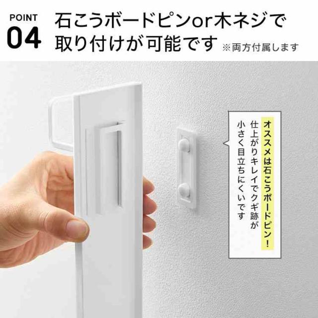 石こうボードピンで簡単に取り付けできる、縦型の壁付けハンガーです。