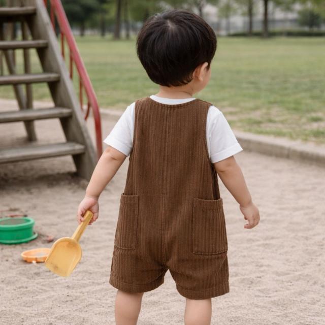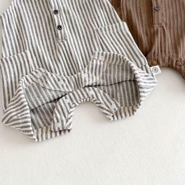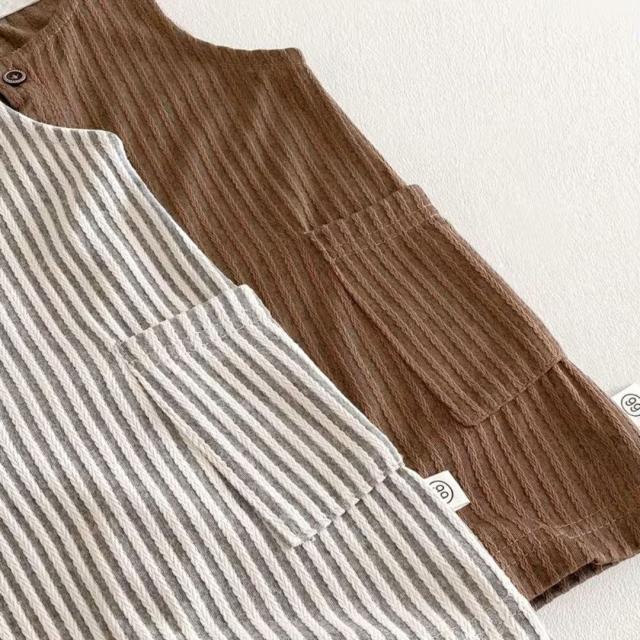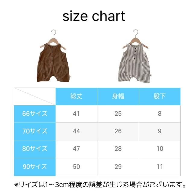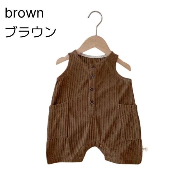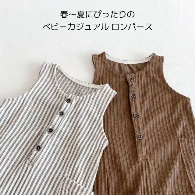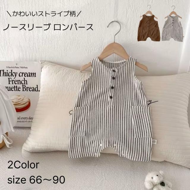 ベビー服 ロンパース ベビーロンパース ノースリーブ カバーオール 新生児 赤ちゃん カジュアルロンパース ストライプ お洋服 子供 子ども 春 夏 男の子 女の子 ブラウン ホワイト 66 70 80 90 カジュアル