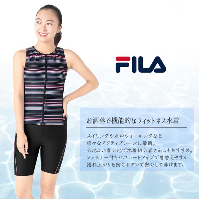 FILA フィラ 大きいサイズ 水着 フィットネス レディース セパレート 半袖 ノースリーブ めくれ防止 《レビュー記入で送料無料》 フィットネス水着 体型カバー LL 2L L M ぽっちゃり 30代 40代 50代 60代 70代 80代 ママ ミセス シンプル 314610 314611 送料無料