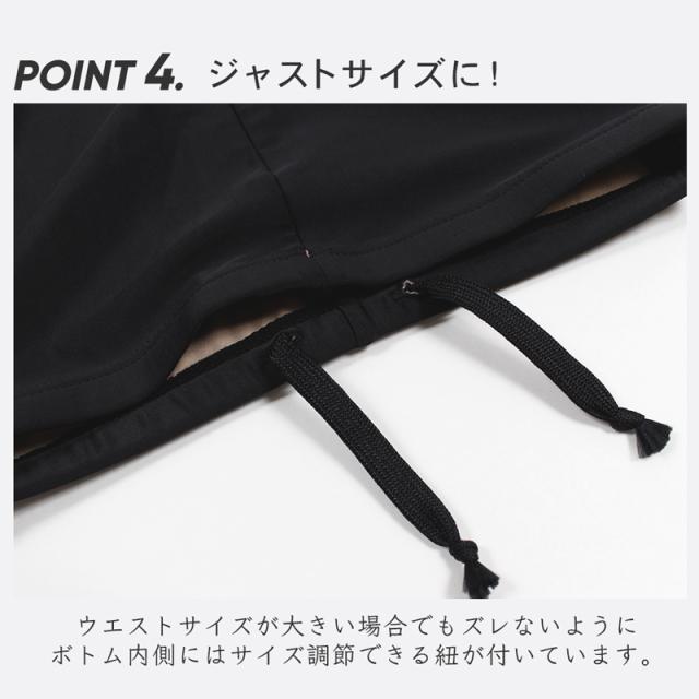 濡れても着替えやすいファスナー仕様で、