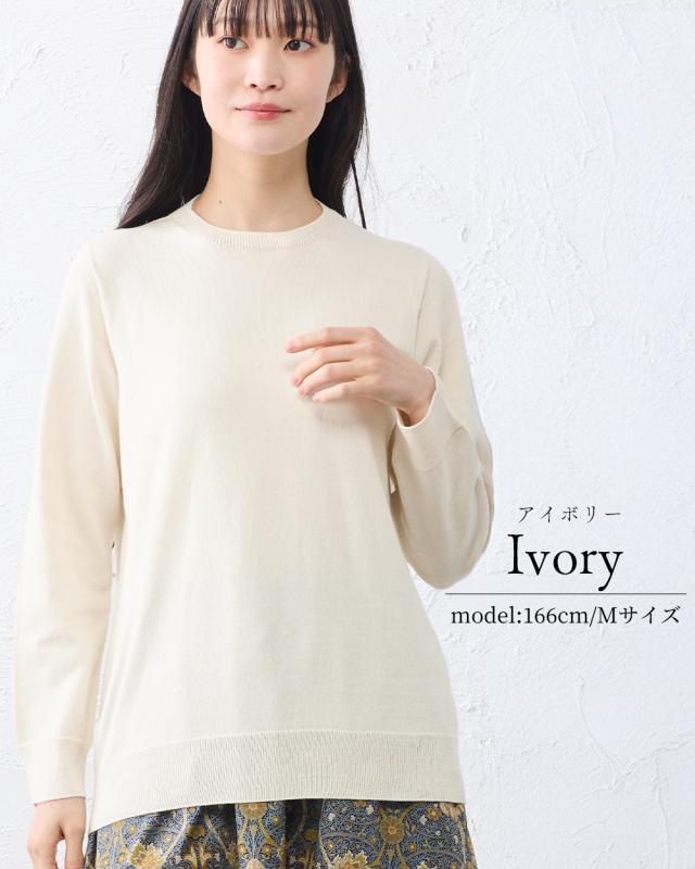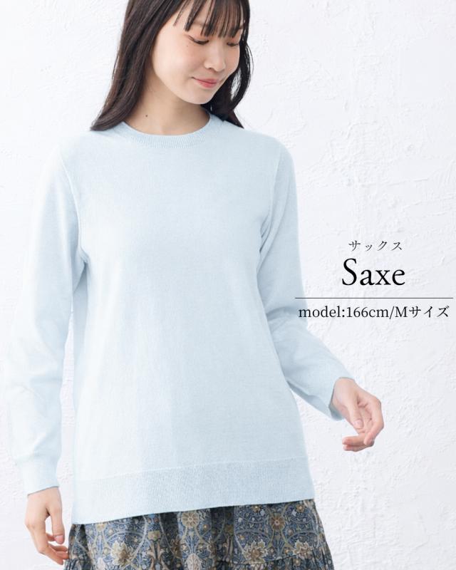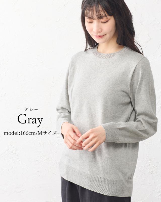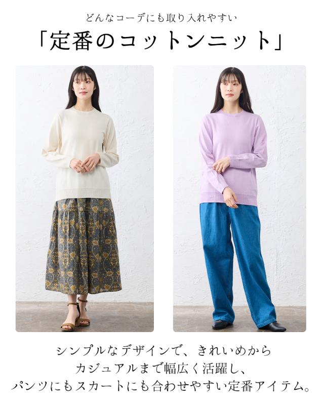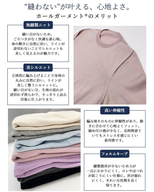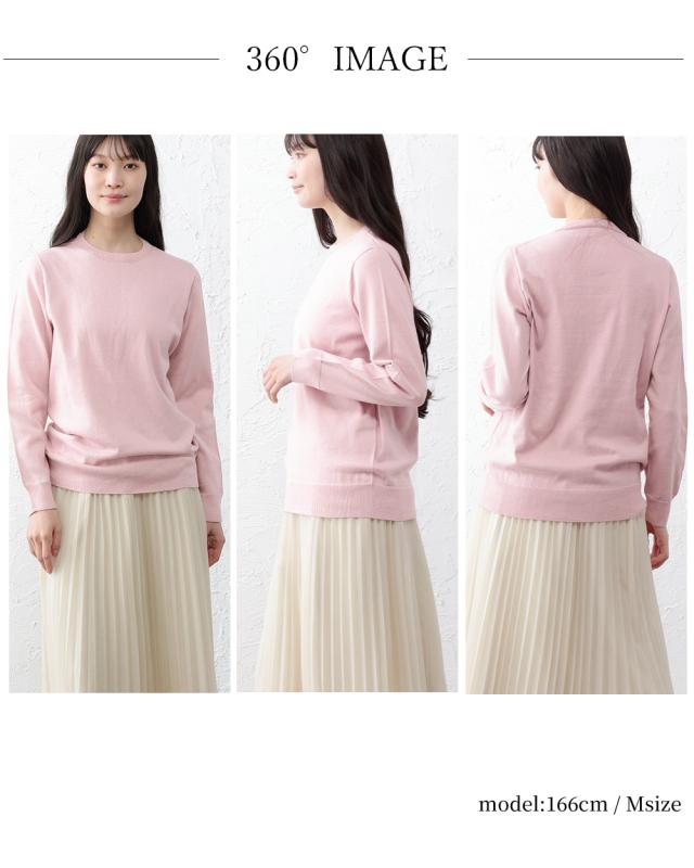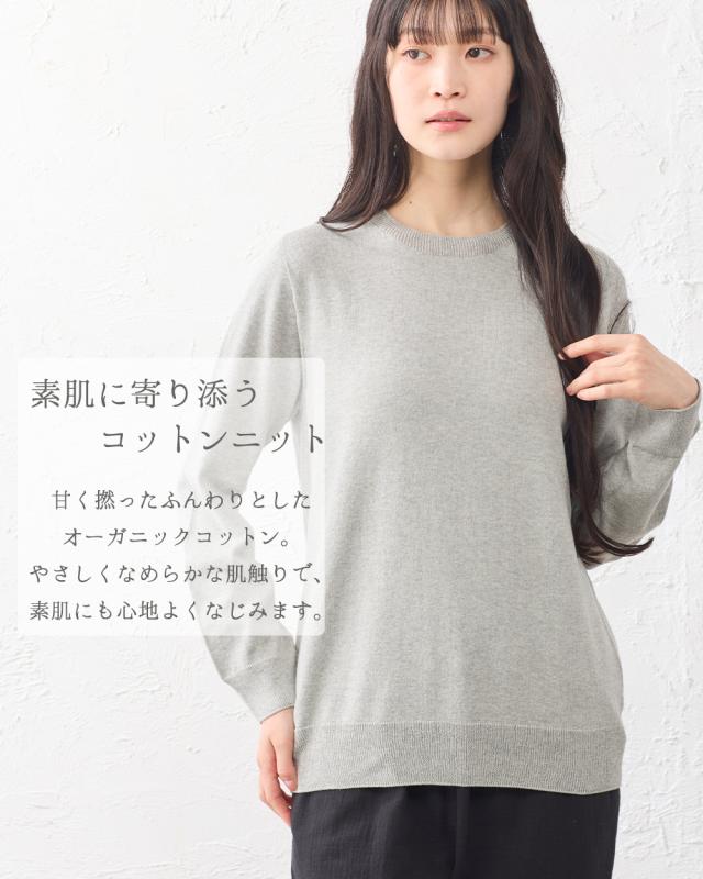【ホールガーメント】オーガニックコットン セットインクルーネック 日本製 クルーネック ニット 3DKNIT 無縫製 縫い目のない プルオーバー トレーナー Tシャツ レディース 長袖ニット トップス 綿100 春 夏 秋 冬 天然素材 敏感肌 チクチクしない 肌に優しい吸湿性