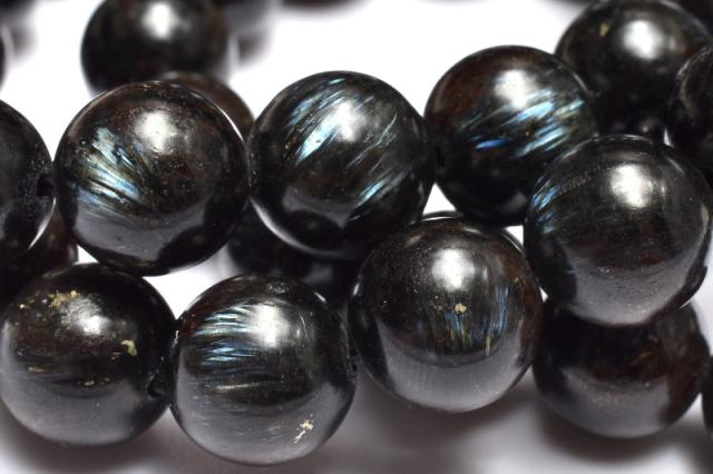 | 特徴・意味 | 輝く羽根が夜空に溶け込んだかのようなシックなブレスレットです。 ヌーマイトは、1982年に発見された比較的新しい鉱物です。しかしこの鉱物は一説によると、約30億年前に形成されたといわれています。地球が誕生したのが46億年前なので、気の遠くなるような年月を経て現代に生まれた太古の石です。 発見場所であるグリーンランドのヌーク地方に因んで「ヌーマイト」と名づけられました。発音は様々なようで、「ニューマイト」「ヌーミット」と呼ばれることもありますが、一般的には「ヌーマイト」がもっとも浸透しているようです。 一見すると「真っ黒の石」のようにも見えますが、他の黒色のパワーストーンと異なり、光の角度によってゴールド、ブルー、グリーンなどの独特の輝きが見られます。ムーンストーンが持つシラーのようにも見える場合もありますが、まったく別種の鉱物です。 ヌーマイトは、太古の地球で作られた鉱物だとされていることから、持ち主の古くから抱える不安や恐怖などのマイナスイメージを緩和してくれると伝えられています。 |