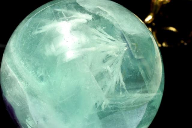 | 特徴・意味 | フローライトの中から広がる幻想世界にうっとりしてしまいそうです。 大人気のフェザーインフローライトを手に入れるチャンス! ※羽根と表現させていただいている物はフローライトの内包物の事です。実際の羽根ではございません。 丸玉は360度の全ての面からパワーを発し、持ち主や置いた場所の魔除け、 災難除けはもちろん、幸運のパワーを拡散して引き寄せてくれるといわれています。 フェザーインフローライト(エンジェルフェザーフローライト・石花蛍石)は、フローライト(蛍石)の中に羽状の白い内包物が見られることからこう呼ばれています。 フローライトは世界各地で採掘されるのですが、このような羽状の内包物が見られるのは世界的に見ても珍しいものです。 エンジェルフェザーフローライトは流通量が少なく、稀少な石です。 和名を石花蛍石と言い、天使の羽が重なり合ったような美しいインクルージョンが見られます。 鮮やかなブルーグリーンに濃淡にパープルや白の帯が絶妙なバランスで折り合いとても美しい色合いです。 |