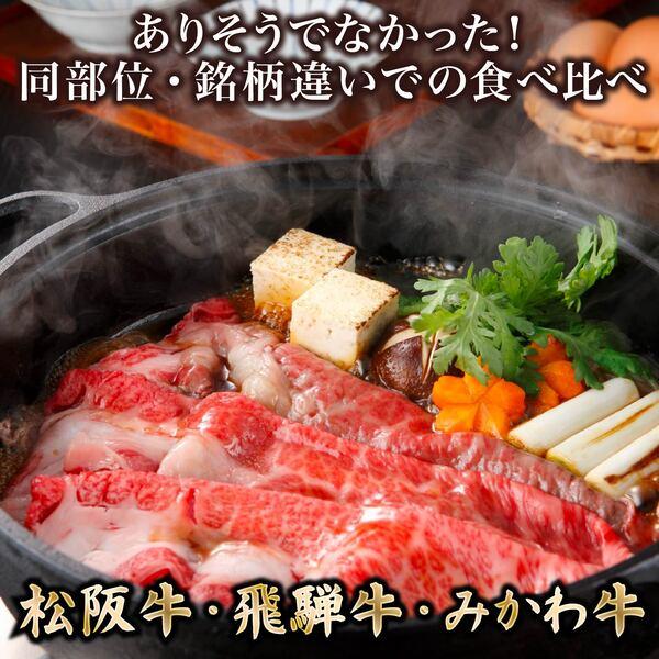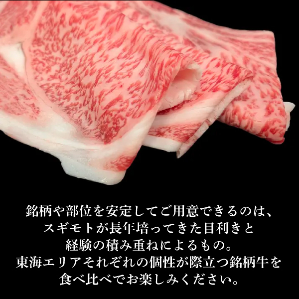 【創業125年老舗スギモト】東海3大銘柄牛 ロースすき焼き食べ比べセット 計600g(松阪牛・飛騨牛・みかわ牛 各200g)特製割り下付き
