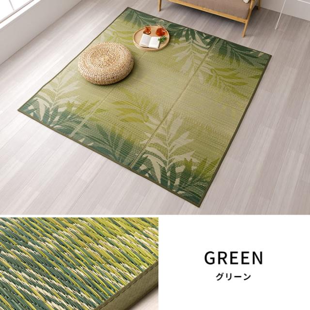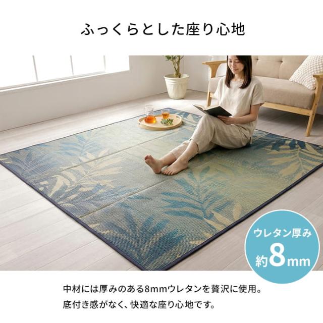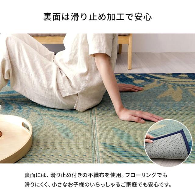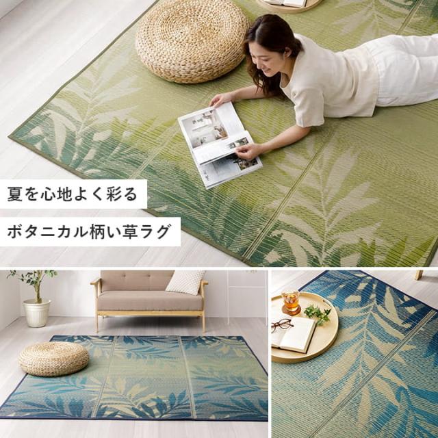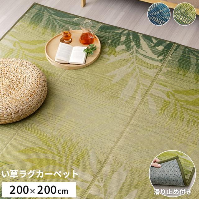 い草ラグ カーペット 2畳 「 ヴァレン 」 約200×200cm 夏用 ラグ 滑り止め ラグマット イグサ 敷物 ボタニカル柄 おしゃれ ウレタン 裏貼り ござ ゴザ