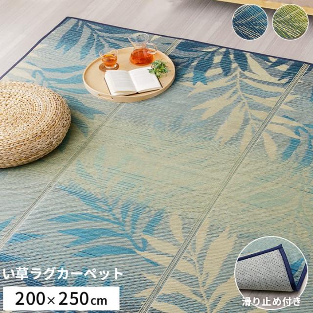い草ラグ カーペット 3畳 「 ヴァレン 」 約200×250cm 夏用 ラグ 滑り止め ラグマット イグサ 敷物 ボタニカル柄 おしゃれ ウレタン 裏貼り ござ ゴザ
