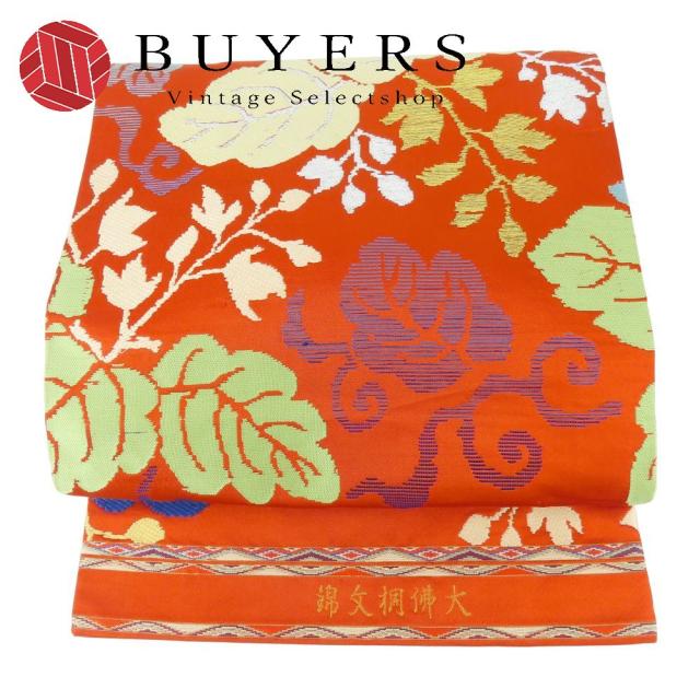 中古 袋帯 正絹(金銀糸除く) オレンジ系 マルチカラー 龍村平蔵製 大佛桐文錦 和装 呉服 和服 きもの レディース 女性