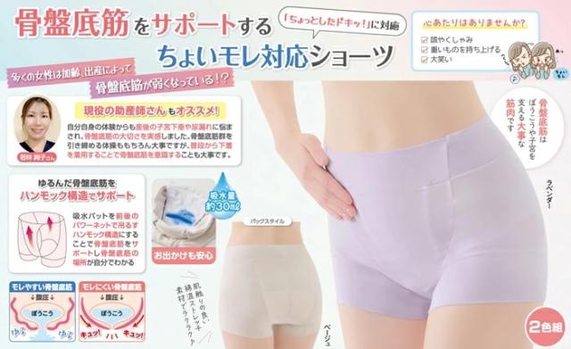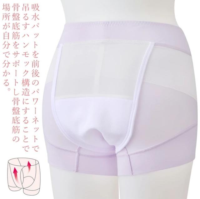 ◇「ちょっとしたドキッ!」に対応。吸水量/約30mL。骨盤底筋をサポートするちょいモレ対策ショーツ。