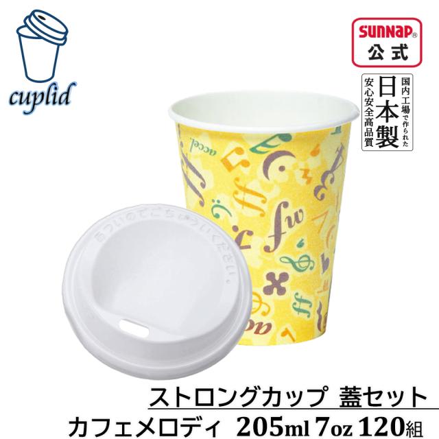 cuplid ストロングカップ カフェメロディ 蓋セット 205ml 7oz 120組【発泡断熱 ふた付き 機能性紙コップ カフェサイズ レギュラー 日本製】
