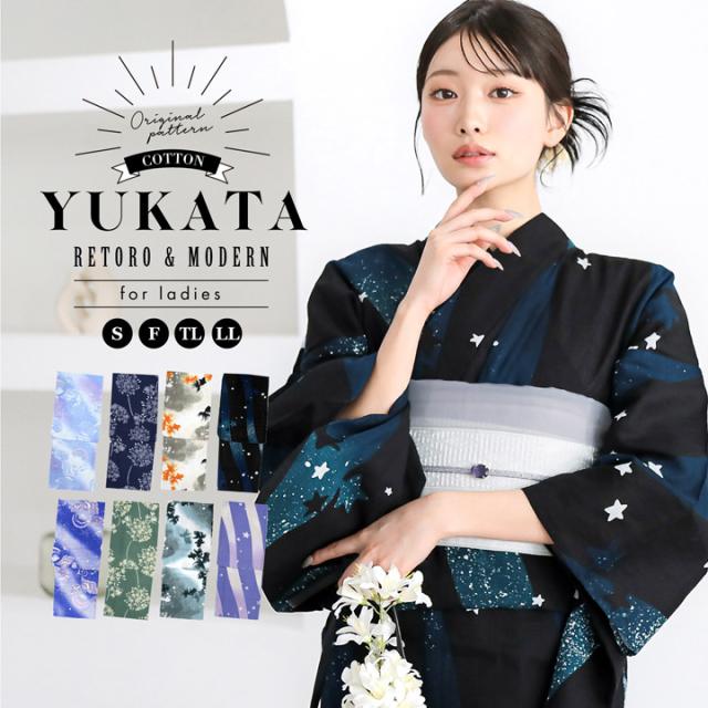 浴衣 レディース 大人可愛い 女性浴衣単品「貝殻・アガパンサス・ゆらぎ金魚・天の川」S/F/TL/LLサイズ 綿 きもの町オリジナル 個性的 レトロモダン 花火大会 夏祭り 女性用浴衣 ゆかた yukata【メール便不可】