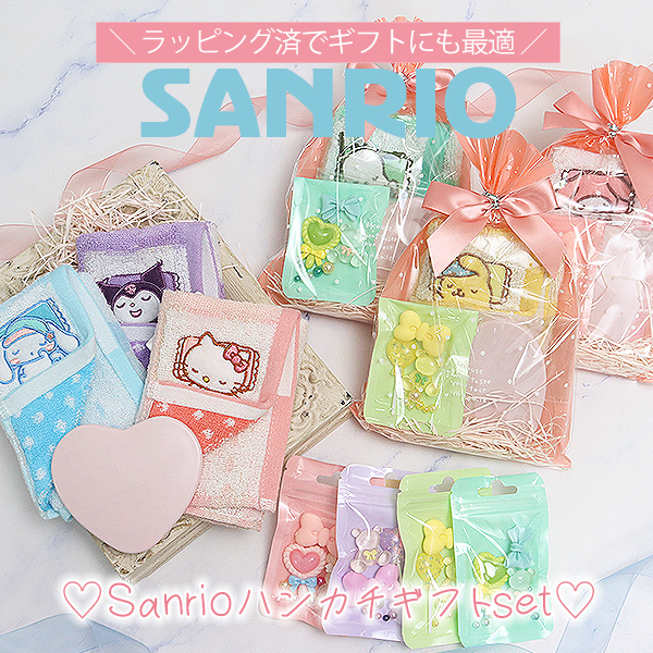 サンリオ タオルハンカチ デコ パーツ コンパクトミラー ギフト ハートプレゼント 誕生日 贈り物 お祝い かわいい ギフト 女性 女の子