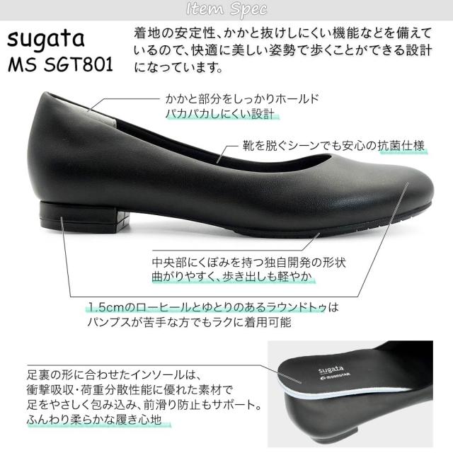 【26春夏新作】 パンプス 歩きやすい ローヒール 黒 ムーンスター スガタ MS SGT801 レディース 通勤 就活 オフィスMOONSTAR sugata