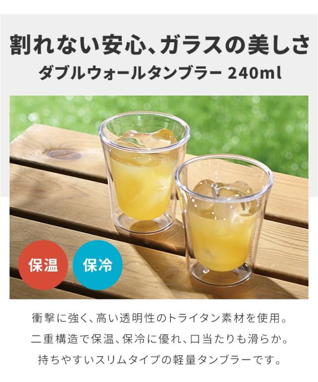 割れない タンブラー 二重構造 240ml 単品(1個)透明 トライタン 丈夫 軽量 コップ カップ グラス おしゃれ アイス ホット 保温 保冷 スリム アルコール グラス風 新生活 一人暮らし