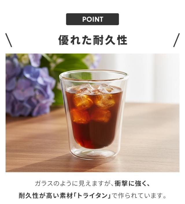 キーワード: 割れない タンブラー トライタン 二重構造 ダブルウォール 透明 クリア グラス風 プラスチック製 樹脂タンブラー 丈夫 割れにくい 軽量 スリム 持ちやすい コップ カップ グラス 食器 ドリンクカップ 保温 保冷 温度キープ アイス ホット 冷たい 温かい ビールグラス ハイボールグラス 焼酎グラス アルコール 日本酒 ワイン 水 お茶 ジュース コーヒー アイスコーヒー ホットコーヒー おしゃれ シンプル 北欧風 普段使い 自宅用 来客用 オフィス デスクワーク アウトドア キャンプ レジャー ベランダ 飲み物用 割れない食器 新生活 一人暮らし 引っ越し ギフト プレゼント