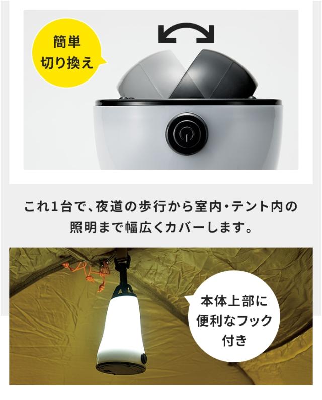 懐中電灯とランタン、2通りの使い方ができる多機能LEDライト。