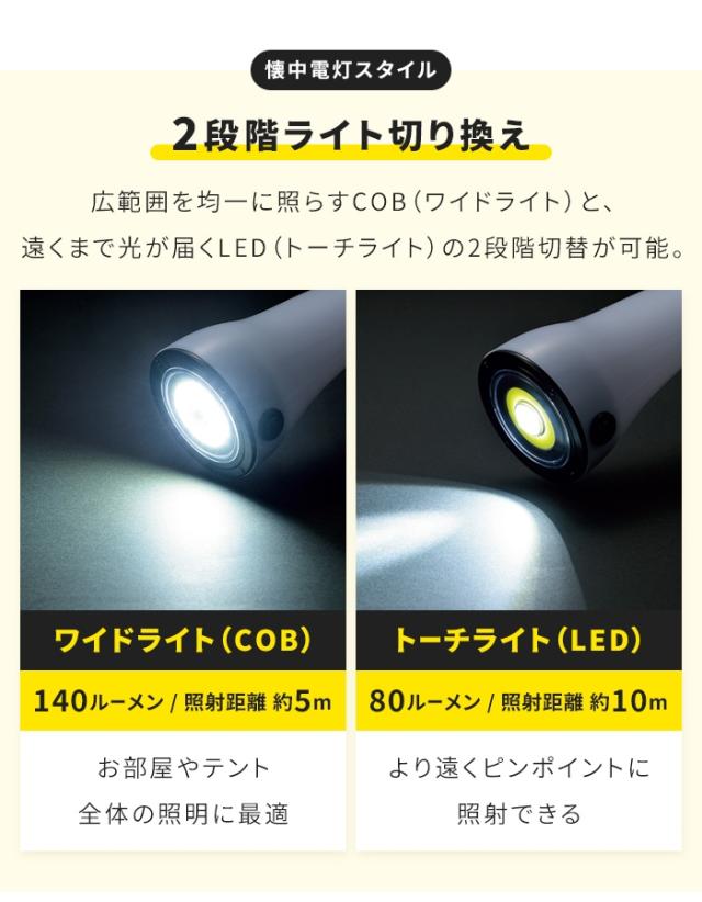 懐中電灯 ランタン 2WAY 切替式 LEDライト トーチライト COBワイドライト 吊り下げ フック付き 単4乾電池 防災ライト 非常用 停電対策 災害対策 アウトドア キャンプ テント照明 室内照明 卓上ライト ベッドサイドライト 車載用 夜間作業 多機能LEDライト 新生活 一人暮らし