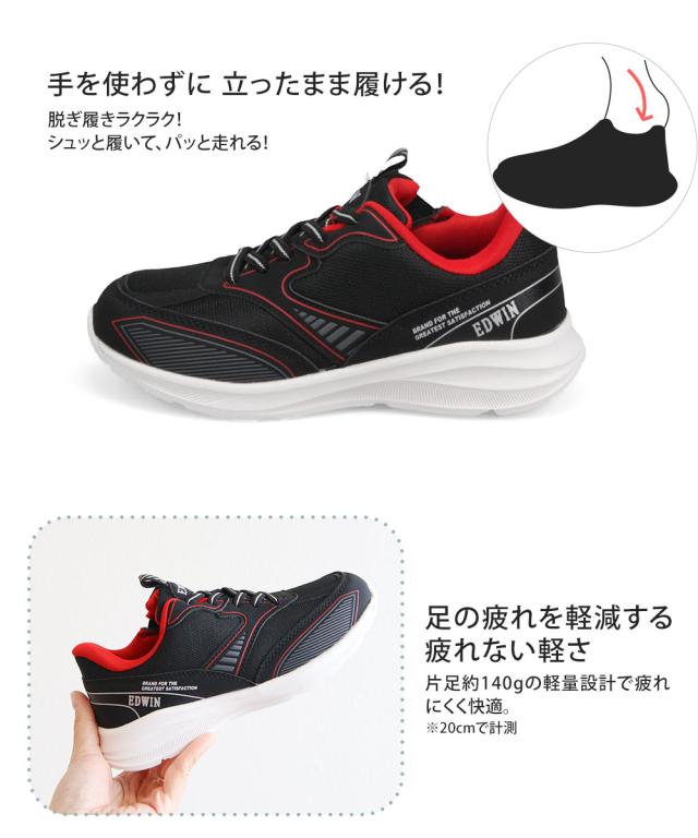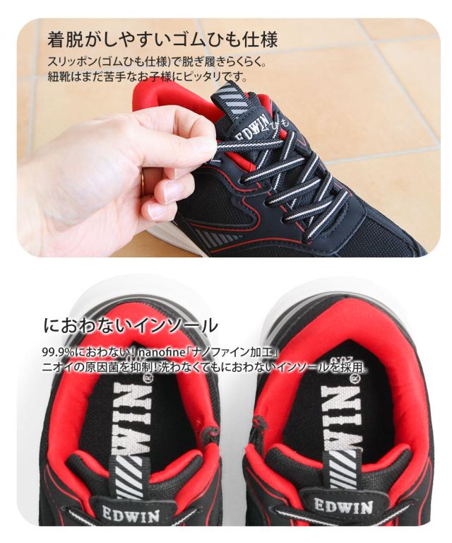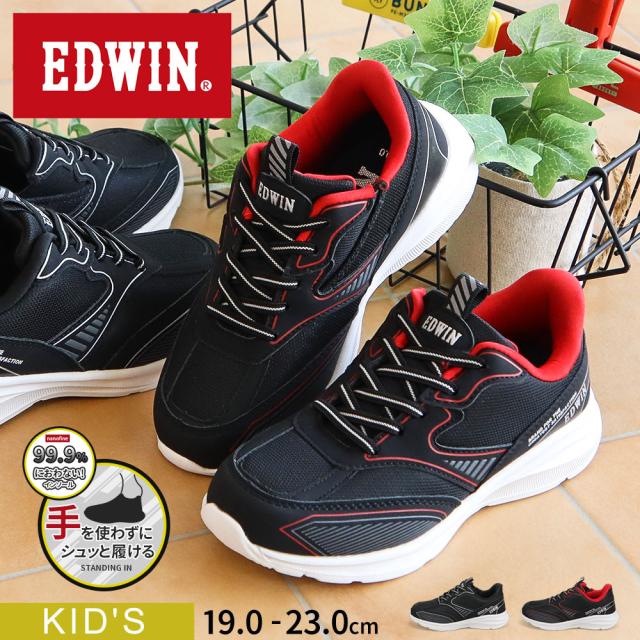 エドウィン スタンディングイン スリッポン スニーカー キッズ 男の子 ハンズフリー ジュニア ブランド 子供靴 運動靴 制菌 軽量 歩きやすい おしゃれ かっこいい ボーイズ 小学生 中学生 通学 軽い 通気性 人気 定番 黒 白 ブラック ホワイト レッド EDWIN edw-3681
