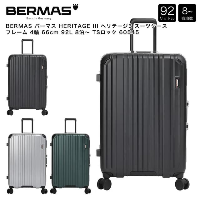 BERMAS バーマス HERITAGE III ヘリテージ3 スーツケース フレーム 4輪 66cm 92L 8泊〜 TSロック 60545