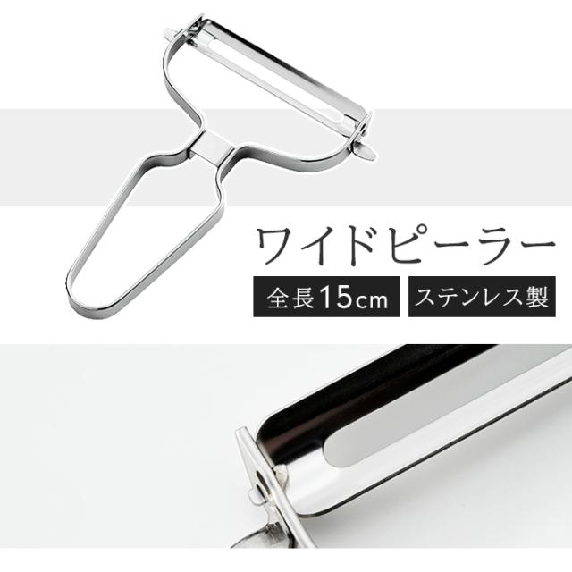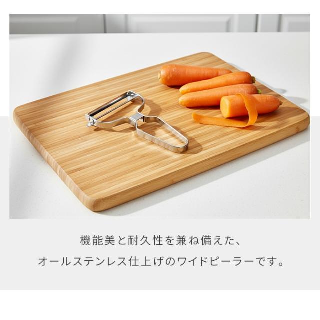 キーワード: ワイドピーラー 千切りピーラー キャベツ 千切り スライサー 野菜スライサー ステンレスピーラー 幅広刃 オールステンレス 皮むき器 皮剥き 野菜ピーラー 幅広ピーラー 下ごしらえ 調理器具 軽量 シンプル 丈夫 キッチンツール 新生活 一人暮らし