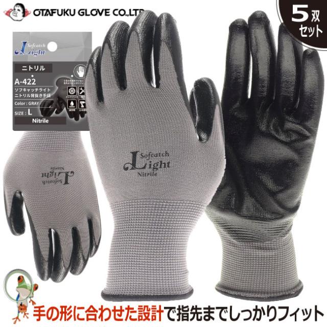 手袋 おたふく 背抜き手袋 ソフトキャッチライト A-422【5双セット】現場 作業用手袋 作業手袋 グローブ メンズ レディース 作業グローブ ニトリル手袋 グリップ力 フィット 柔らかい グレー 小さいサイズ