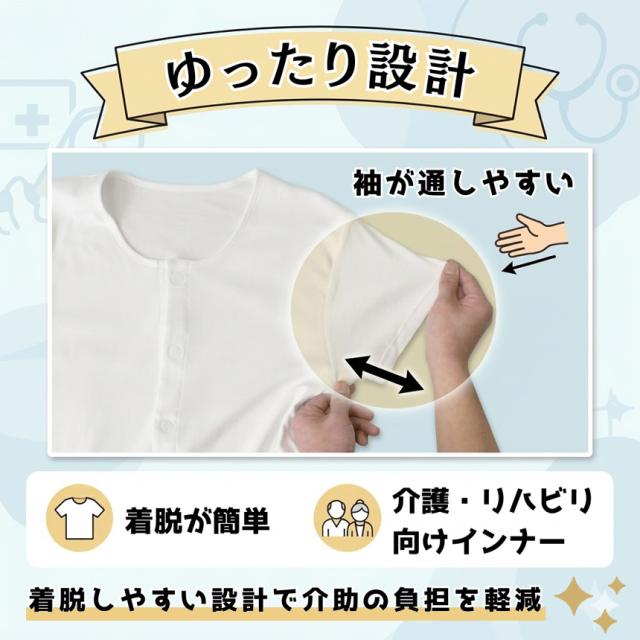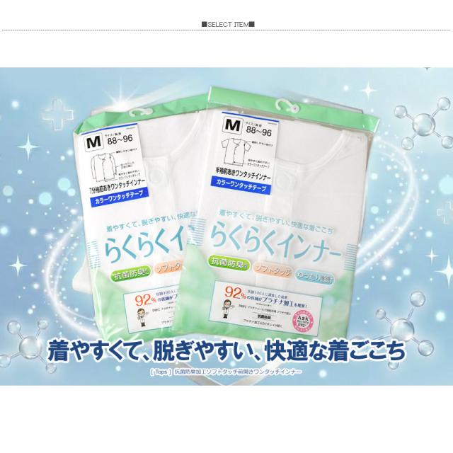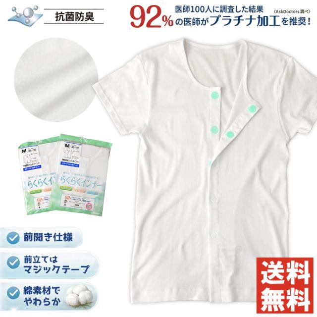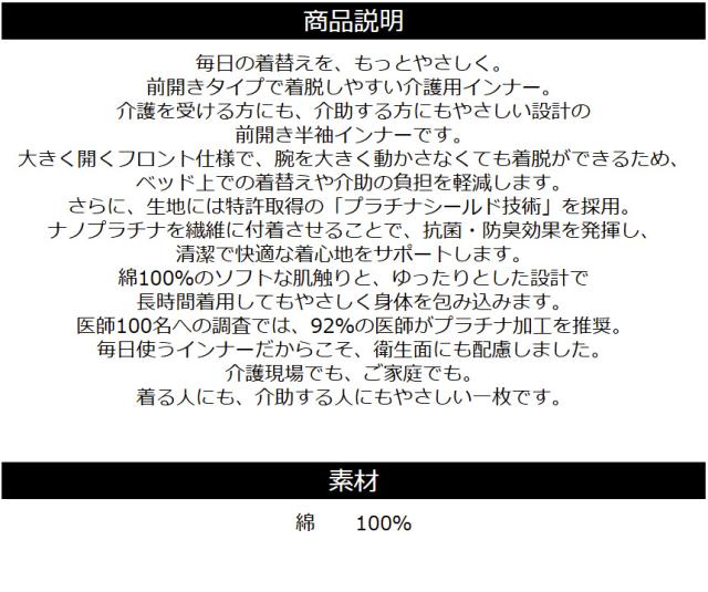 プラチナワンタッチ 前開き 介護 インナー 半袖 抗菌 防臭 綿100% 送料無料 通販A15 【F1-1554】