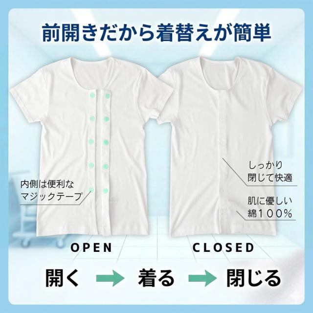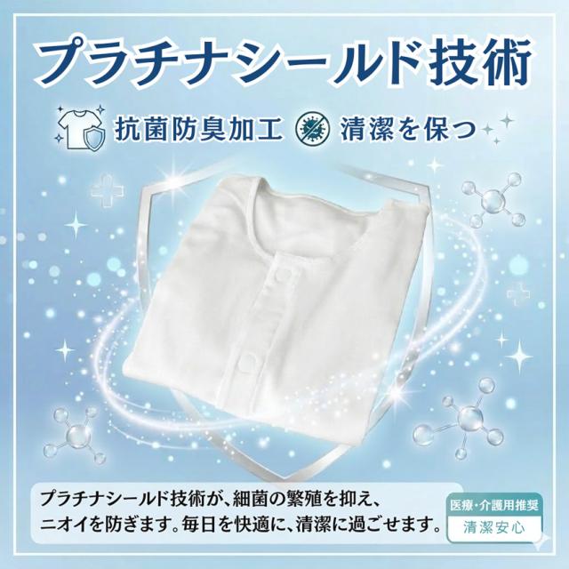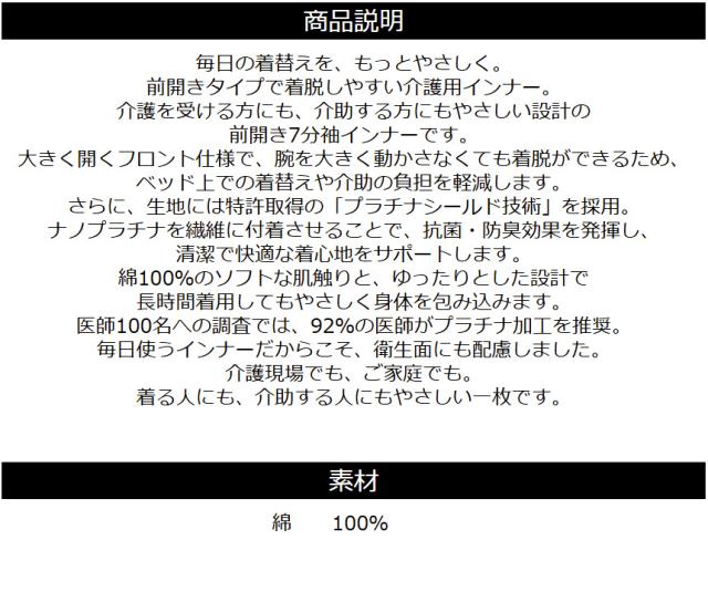 プラチナワンタッチ 前開き 介護 インナー 7分袖 抗菌 防臭 綿100% 送料無料 通販A15 【F3-1560】