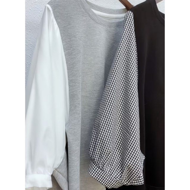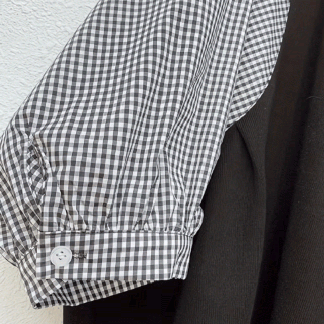 シンプルな身頃にチェック柄の袖を合わせた
