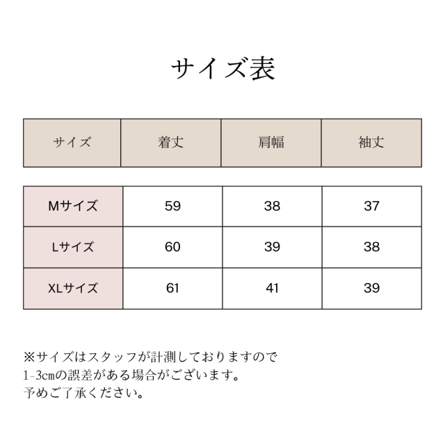 ・袖丈:37cm/38cm/39cm