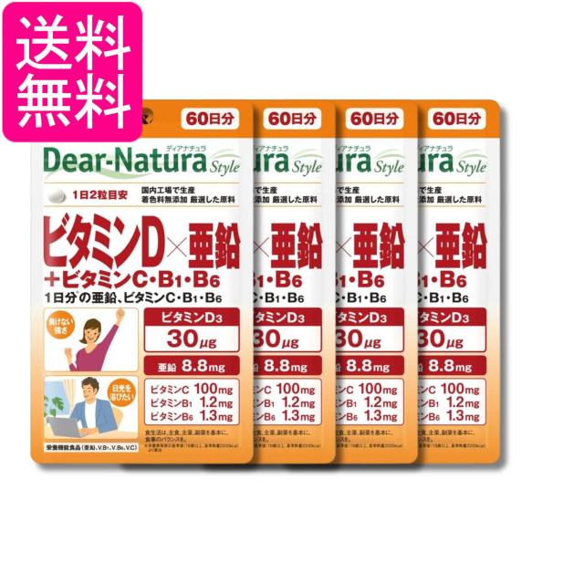 4個セット アサヒグループ食品 ディアナチュラスタイル ビタミンD×亜鉛+ビタミンC・B1・B6 120粒 60日分 サプリ Dear-Natura 送料無料