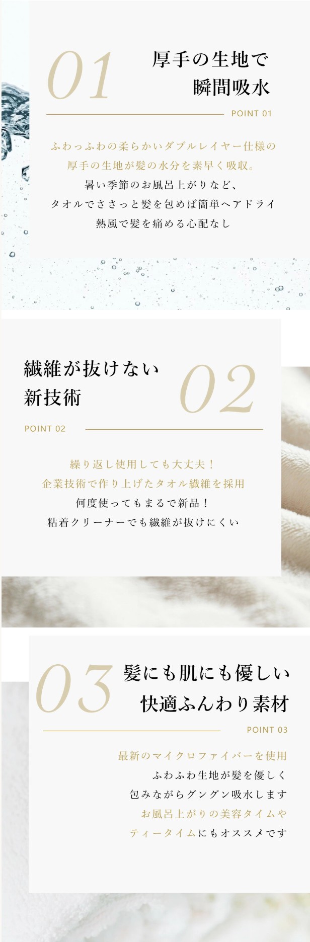 髪の長い女性でも、2分台でのドライヤーで乾かすことが可能!(このタオルでタオルドライすることによって。)