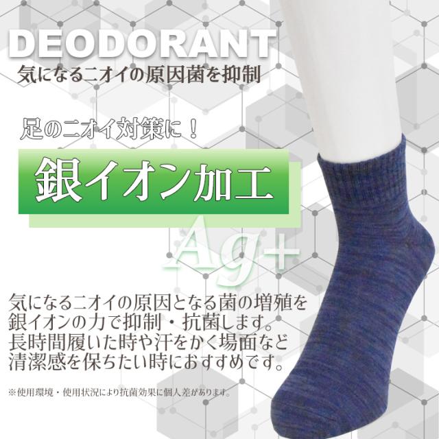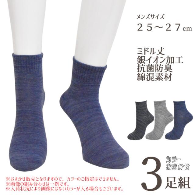 ソックス メンズ 銀イオン DEO Ag+ ミドル丈 杢カラー 726249 おまかせ 3足組 送料無料 消臭ソックス 抗菌防臭 ニオイ対策 デオドラント 足のニオイ軽減 制菌 紳士靴下 無地ソックス 綿混 カジュアル 25cm 26cm 27cm (07029)