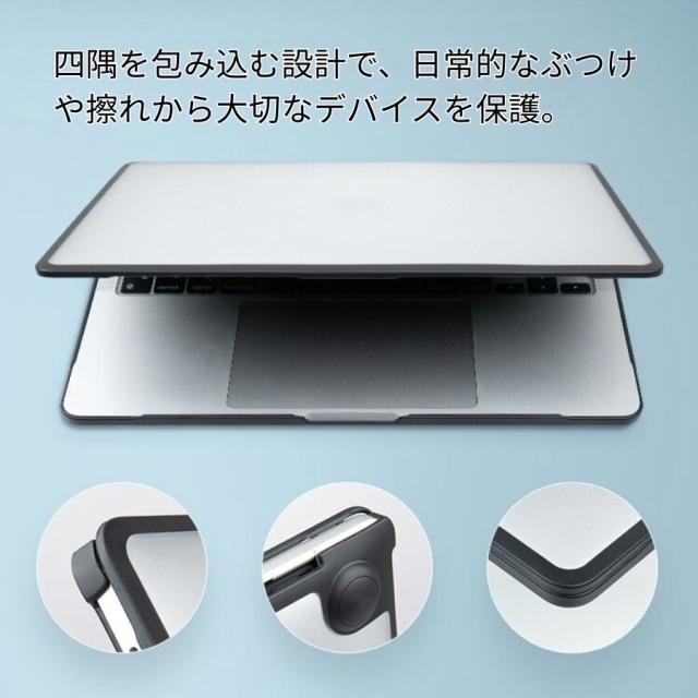 【角と辺の重点保護】四隅を包み込む設計で、日常的なぶつけや擦れから大切なMacBookを保護。