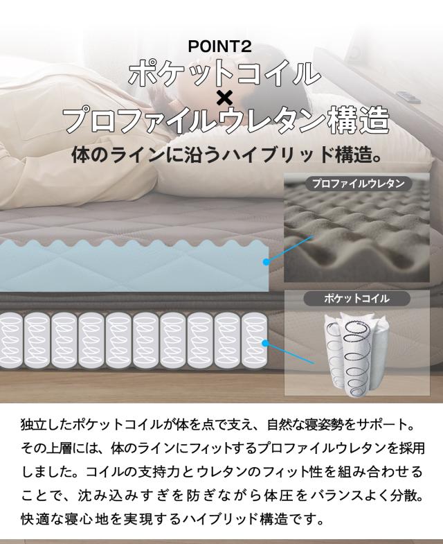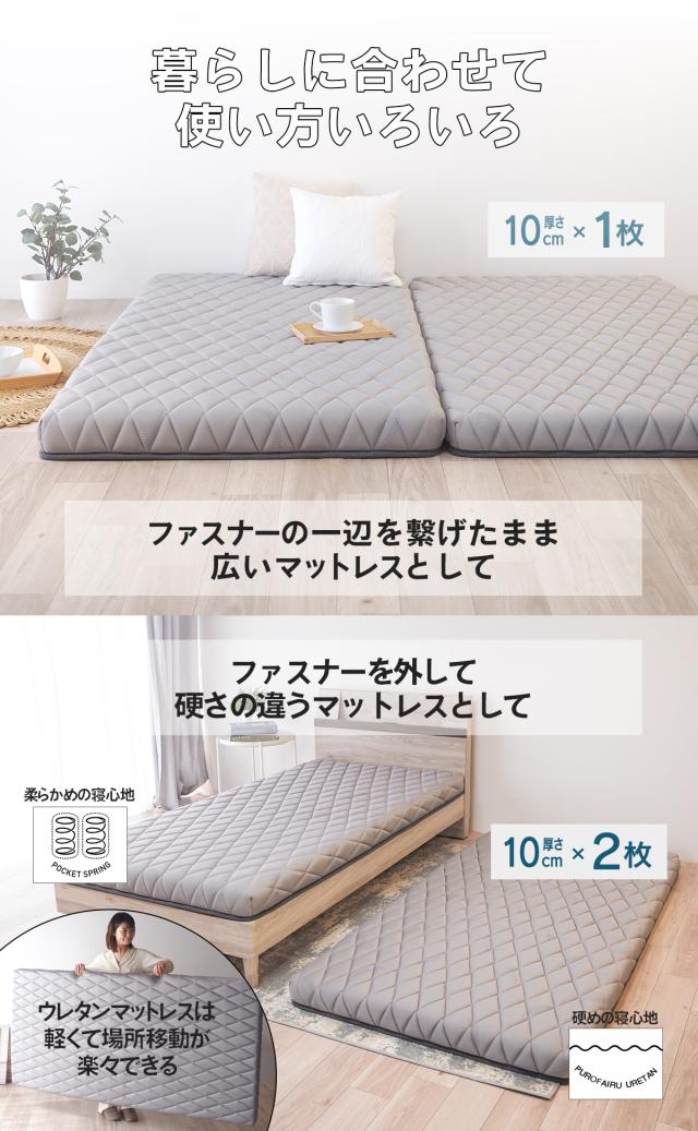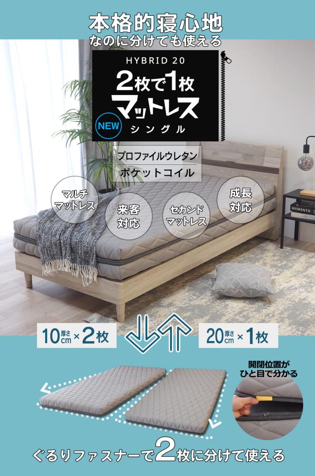 マットレス シングル ポケットコイル ウレタン 20cm厚 ハイブリッド 分割可能 2WAY 連結可能 硬さ違い 高反発 来客にも 2枚で1枚マットレス EN211PF