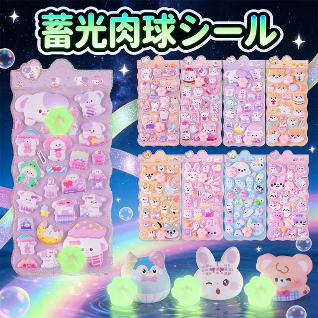 ・蓄光肉球シールは、おしり部分が暗いところでふわっと光る蓄光タイプの立体シールです。