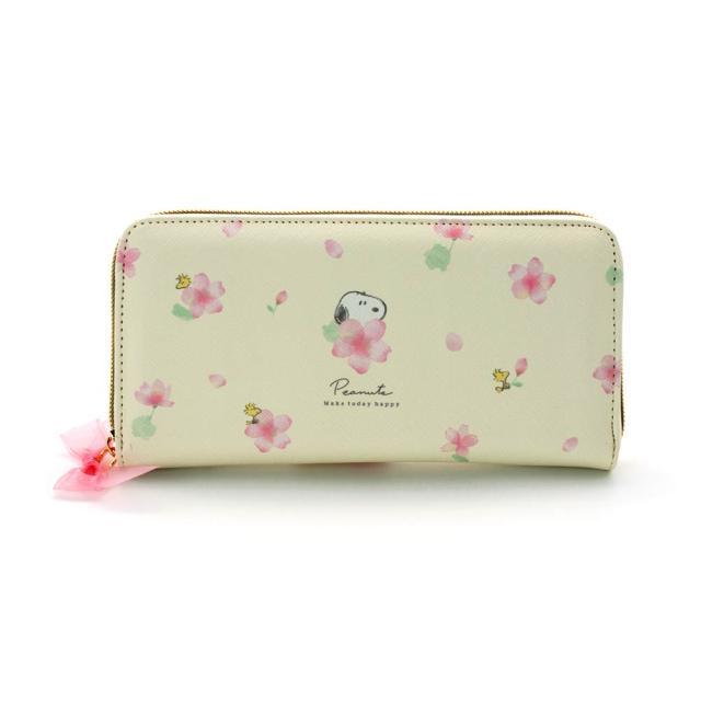 スヌーピーとお花柄の組み合わせが大人かわいいロングウォレットです。