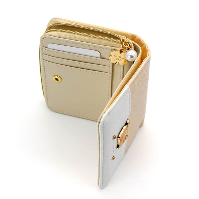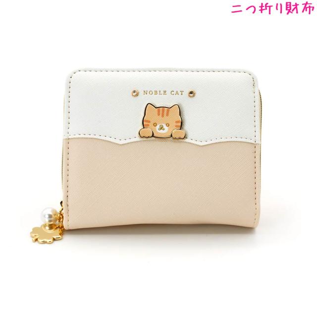 財布 女の子 向け 二つ折り 財布 プレートネコ アイボリー クラックス おしゃれ で かわいい 文房具