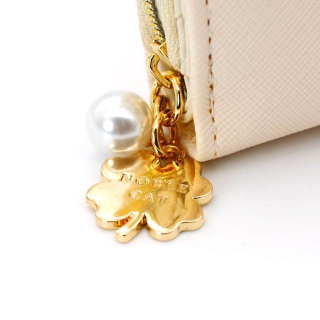 ファスナー部分には、揺れるたびに気分が上がる四つ葉のクローバーチャームと一粒のパールをあしらいました。