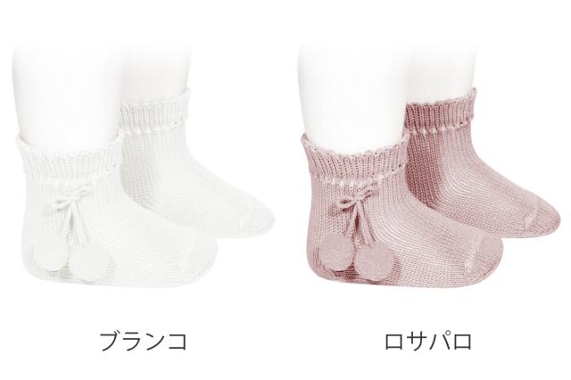 靴下 condor 子供 13.5〜16cm ポンポン付き パール オープンワーク ショートソックス ( コンドル 子ども用靴下 キッズ ソックス くつ下 くつした 丈夫 キッズ用 綿 コットン スペイン製 ギフト おしゃれ )