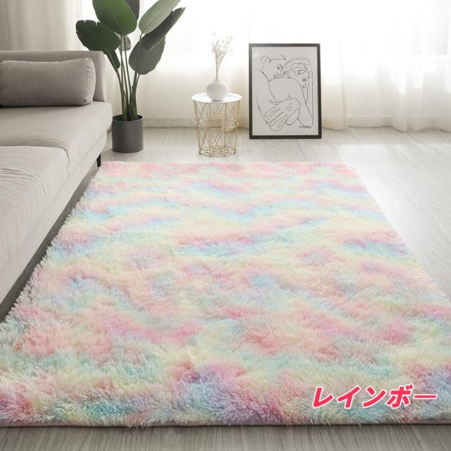 お部屋がパッと明るくなる、グラデーションが可愛い虹色のシャギーラグです。