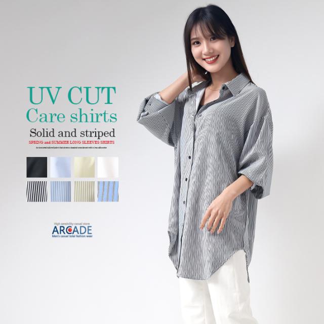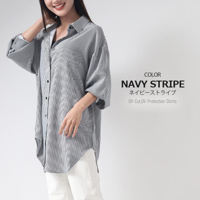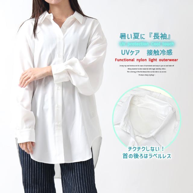 接触冷感 日焼け防止 UVカットシャツ 無地 ストライプ レディース シャツブラウス upf ラッシュガード素材