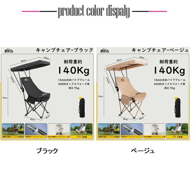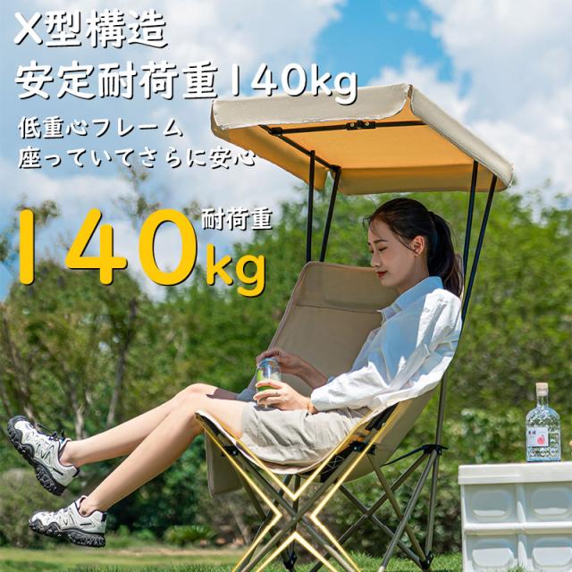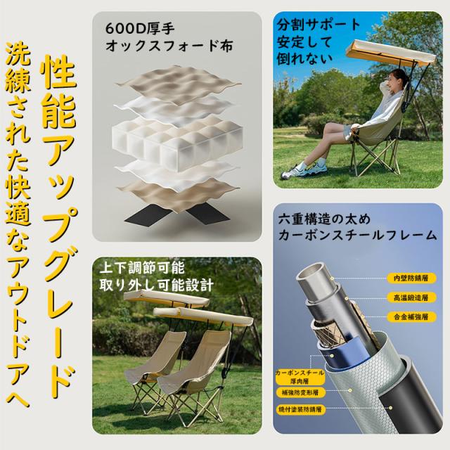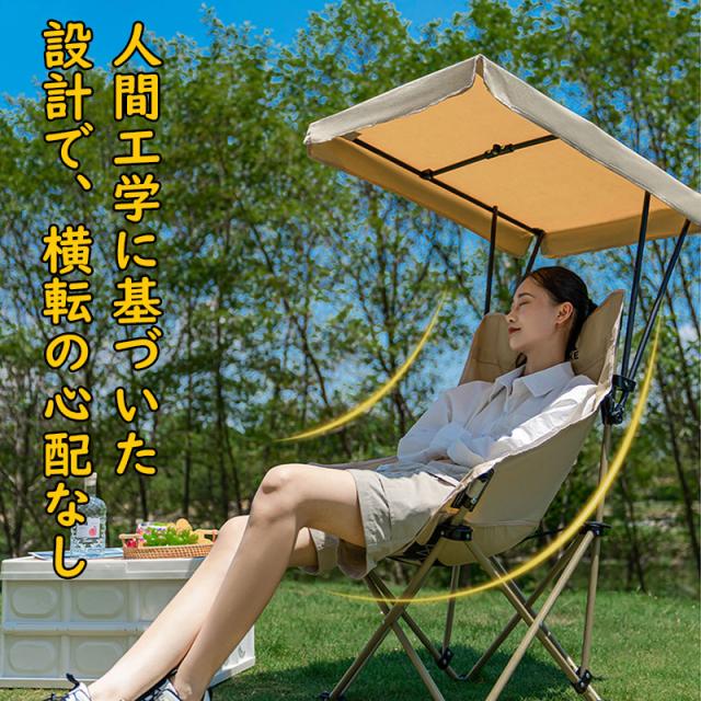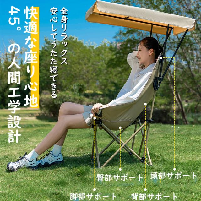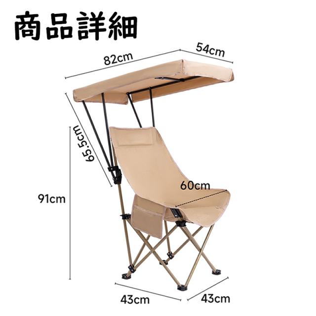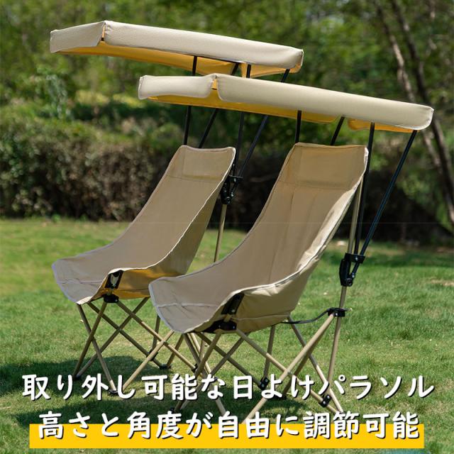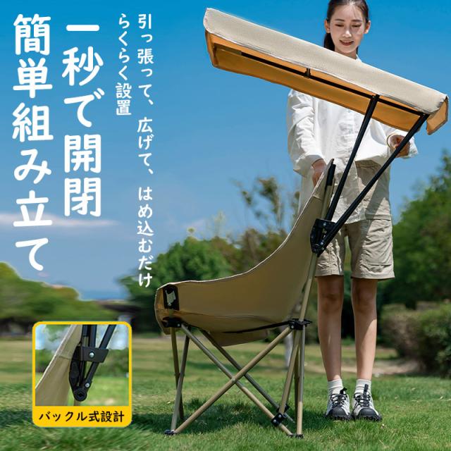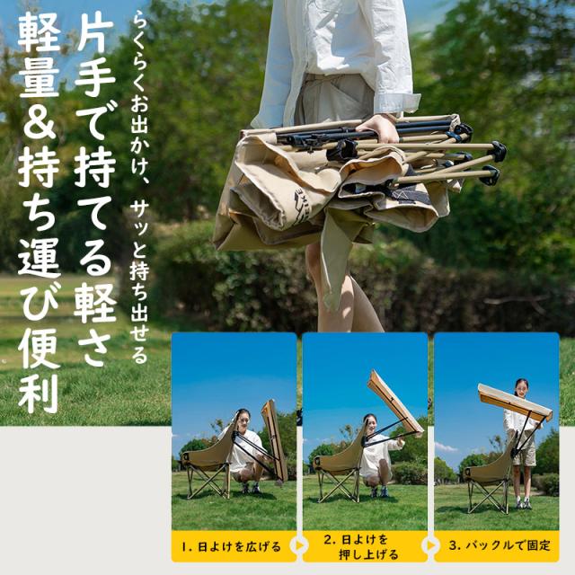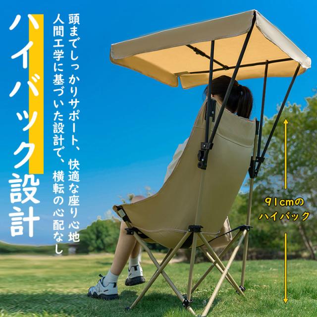 アウトドアチェア 折りたたみ 日よけ付き ハイバック キャンプチェア 椅子 釣り ビーチ 携帯便利 収納袋付き 日焼け対策 屋根付き シェードチェア