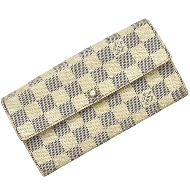 ルイ ヴィトン 二つ折り 長財布 ポルトフォイユ サラ ベージュ グレー ダミエ アズール N61735 財布 ダミエキャンバス 中古 CA2049 LOUIS VUITTON ホック 白 ロング ウォレット フラップ 小銭入れ有
