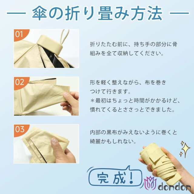 - 海外旅行へ行くのに小さめの折りたたみ傘を探していて購入しました!とても可愛いくてコンパクトです。思ったよりもかなり大きく、これなら2人で入っても、しっかりUVを防いでくれると思いました。じょうぶだし、デザインも可愛いし、このお値段はかなりお買い得です。