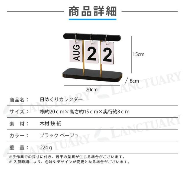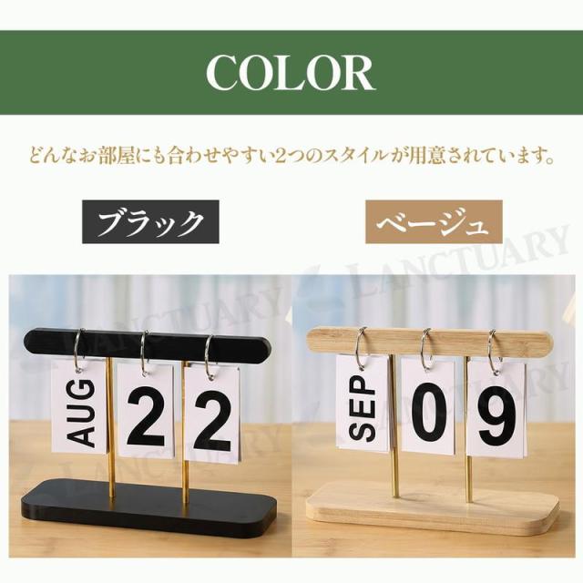 空間を引き締めるモダンで洗練されたブラックと、ナチュラルで温かみのあるベージュの2色展開。 カードいっぱいに描かれた大文字のフォントなので、離れた場所からでも一目で日付を確認できます。