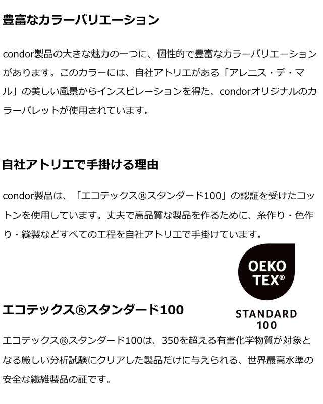 Condor コンドル(スペイン)1898年にスペイン・バルセロナで設立されたARETEX社。創業以来120年以上に渡り高度なニットの成型編み技術とハイテクを駆使し、品質・妥協を許さない姿勢を貫き、年間およそ500万足以上のタイツ・ソックスを生産。最高品質の靴下・タイツメーカーとして世界中に数多くの愛用者を増やし続けています。良質にこだわり、糸作りを含めた全てを地中海沿いの自社工場にて生産しています。肌触りのよさが魅力で、秋冬はもちろんシーズンを通して親しまれる定番アイテムです。